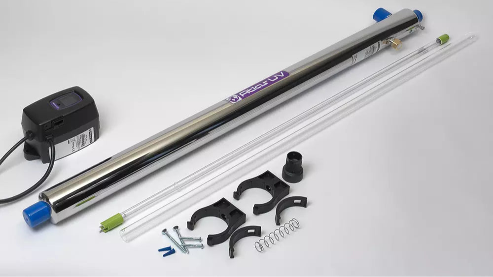 This home UV disinfection system is suited for 3-5 bedroom properties where the peak water demand is unlikely to exceed 57l/min or 3.4m3/hr throughout the property. The Atlas L57 UV unit provides a dosage of 30 mJ/cm² (at end of its 1 year lamp life). This Atlas UV unit is manufactured with domestic drinking water treatment in mind and though you can use it for an aquarium, the UV dose will be higher than you would normally need. Please see the technical details for further information. Additional UV unit options are available from UV Water Filter on request.