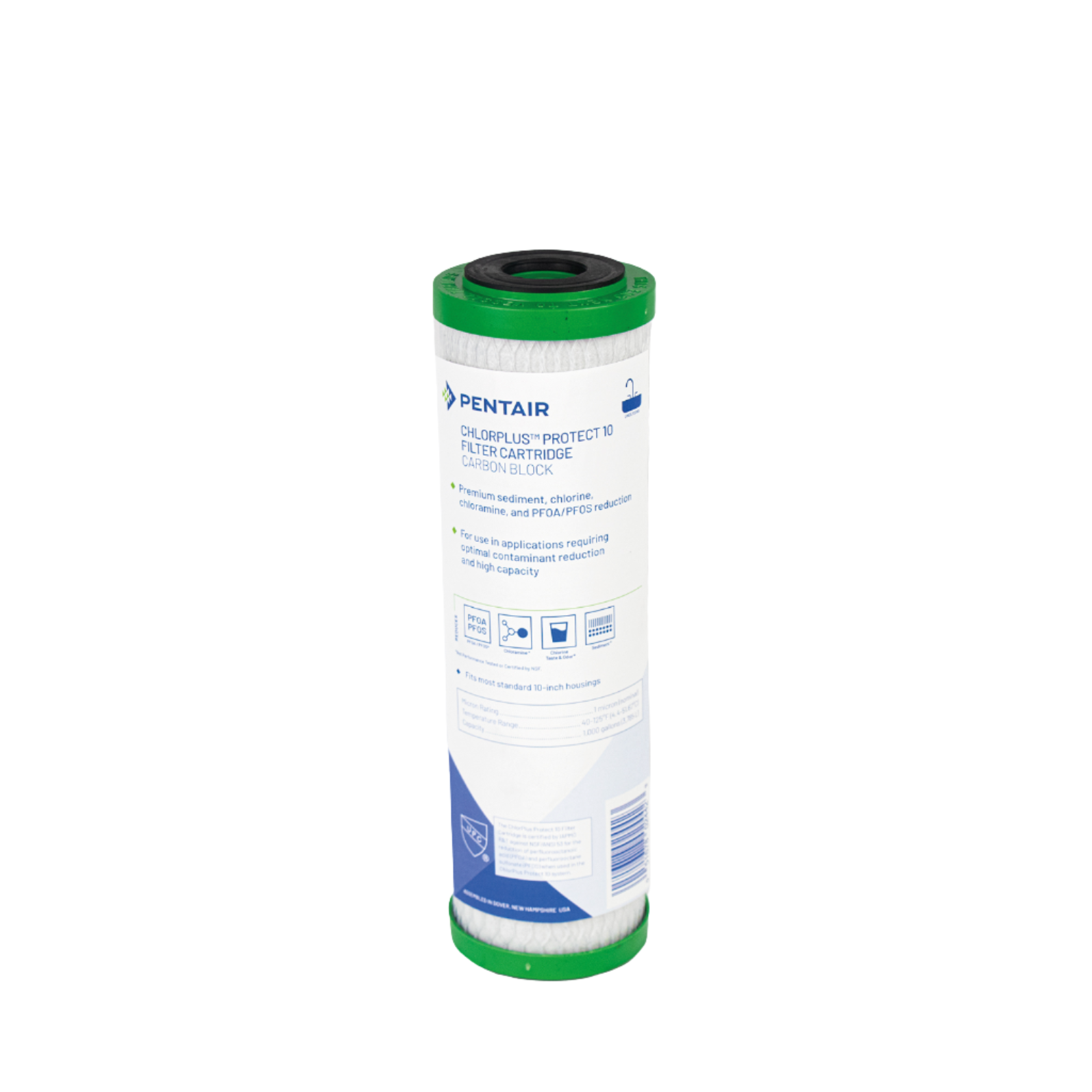 This NSF/ANSI 53 certified cartridge reduces the presence of forever chemicals, also known as PFAS by up to 98%. The Pentair ChlorPlus Protect system also provides excellent sediment, chlorine and chloramine reduction in a professional grade, easy to use format.